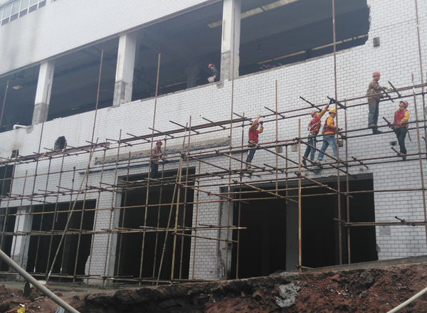 工程概況:重慶銀翔集團是一家集摩托車和發動機研究、開發、制造、銷售于一體的大型科工貿企業集團,在新廠的建設中,經過重慶華發裝修設計師與該集團項目負責人溝通,整個建筑外墻的部分采用幕墻的結構。幕墻是建筑的外墻圍護,不承重,像幕布一樣掛上去,故又稱為“帷幕墻”,是現代大型和高層建筑常用的帶有裝飾效果的輕質墻體。由面板和支承結構體系組成的,可相對主體結構有一定位移能力或自身有一定變形能力、不承擔主體結構所作用的建筑外圍護結構或裝飾性結構。