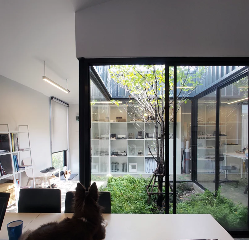泰國曼谷有個小型設計工作室坐落在一個大約100平方米的地方,以前曾用作停車場。這個辦公室裝修設計概念是將小型辦公室中的植被區域結合起來創造“深綠色幾何體積”。下面一起跟著華發小編來看看這個辦公室裝修設計效果圖吧。