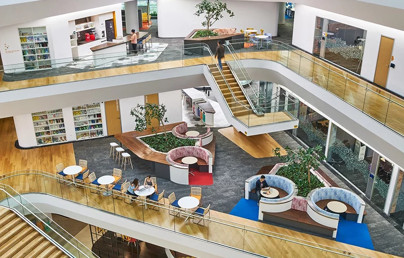 該建筑的四個主翼辦公室裝修由“正方形”或“廣場”連接,創造了本地化的會面點,培養了社區活動的感覺。辦公室裝修通過使用印尼本土的紡織品,材料和圖像,培養整個相連的室內空間的凝聚力。這重新強化了Aedas的主要目標 - 創造一個充滿當地社區需求的寶貴空間,其設計突出了印尼文化和當地工藝的各個方面。