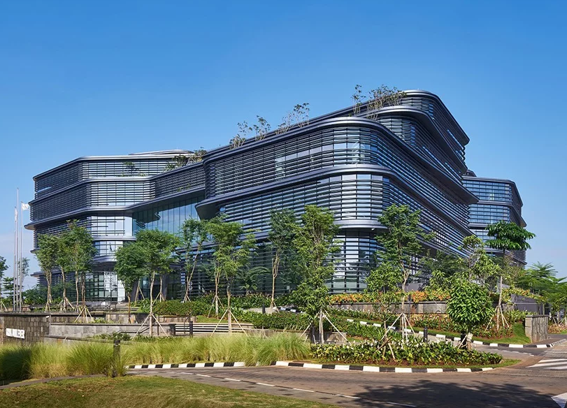 Aedas的整體計劃暗示了印度尼西亞村莊的傳統設計,辦公室裝修其中包含模仿“廣場”功能和連接“街道”的區域。一樓辦公室裝修致力于滿足公眾的需求,包括宗教中心,健身中心,用餐區和多功能空間。這些室內空間自由流入外部綠色口袋和園景甲板 - 由立面上鋁制葉片百葉窗的起伏形成的形式。該辦公室裝修系統與建筑物的幕墻一起,有助于提供遮陽和保持舒適的室內溫度,同時最大化進入空間的自然光量。